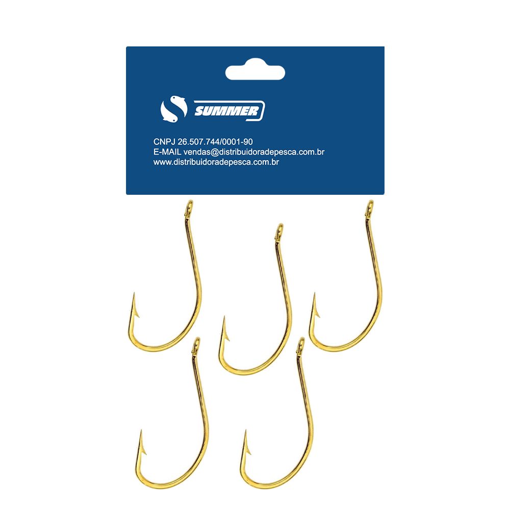 Anzol Maruseigo Gold Nº26 Cartela 5pçs Summer, Anzol de altíssima qualidade, resistência e durabilidade, feito em aço carbono, possui uma ponta super afiada com curvatura diferenciada que possibilita uma fácil penetração ao fisgar um peixe.
