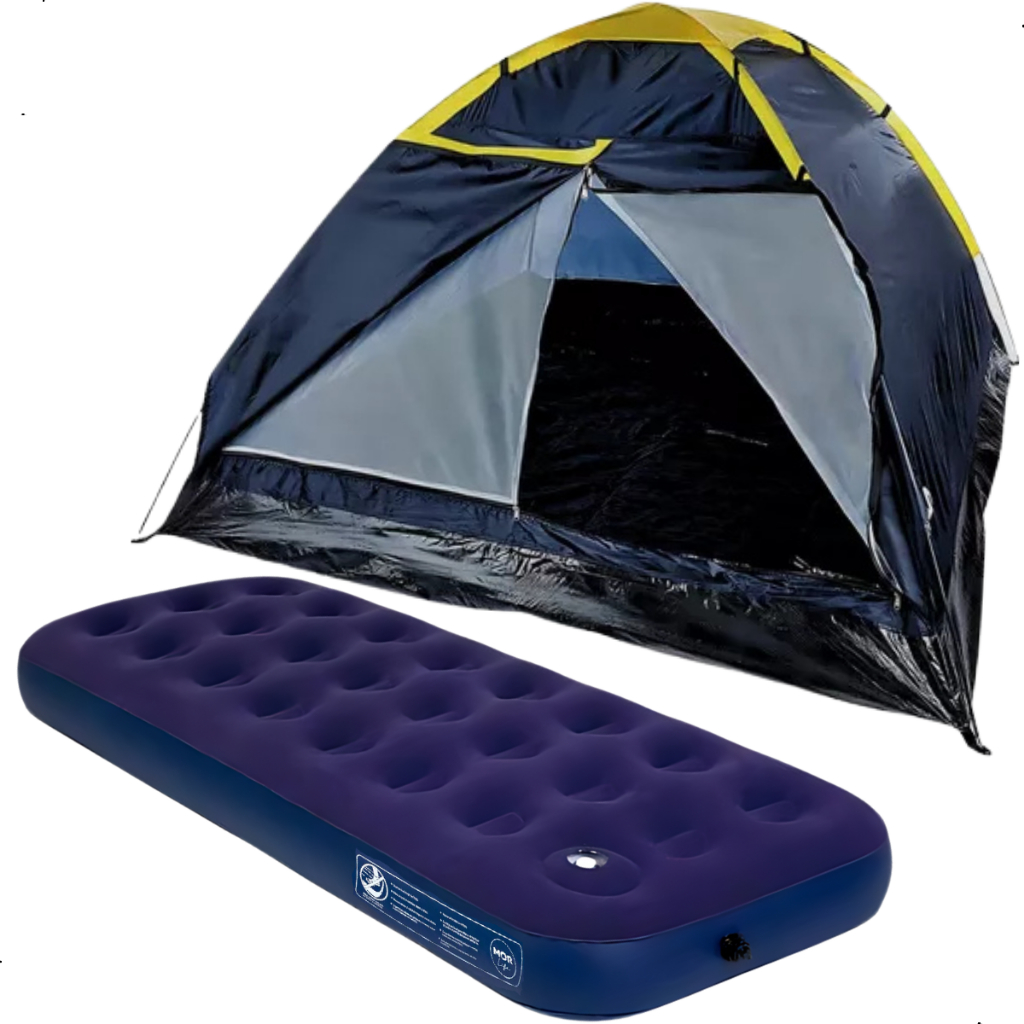 Para suas aventuras ao ar livre, o Kit Barraca San Valentin + Colchão Inflável Solteiro da Kala oferecem conforto e praticidade, transformando cada acampamento em uma experiência inesquecível!