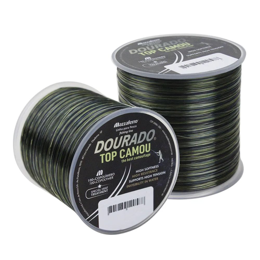 Linha Monofilamento Dourado Top Camou 0,40mm 24,3lbs 719m - Mazzaferro. Pensando em fortalecer o conceito de linhas no mercado a Mazzaferro uma das maiores fabricantes de linhas do país lançou a Dourado Top Camou, uma linha monofilamento com memória extremamente reduzida, baixa elasticidade e ultra resistência linear. A Dourado Top Camou proporciona excelente desempenho mesmo depois de vários arremessos. Carretéis grandes e bem aproveitados, para que o pescador possa ter um ótimo custo benefício em sua aquisição.