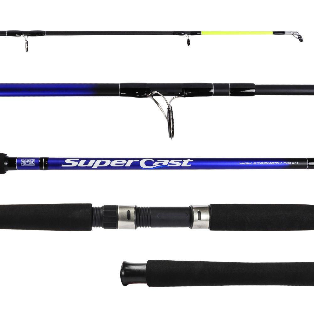 Vara Super Cast SC-702H da Marine Sports, muito utilizada por pescadores que buscam longos arremessos em suas pescarias, ideal para a pescaria em praias e costeiras. Forte e resistente, produzida com a mais alta tecnologia pensando em uma pesca pesada, o corpo dessa vara é feita com mistura de carbono com alta resistência. Sua ponteira de cor fluorescente ajuda na visualização durante a pescaria noturna. Cabo em E.V.A para maior conforto durante o arremesso.